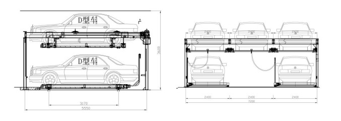 两层升降横移类产品由于其结构简单、合理、安全,操作简便,易于维护;产品布局灵活、组合方便,对场地适应性好,且造价不高。充分利用空间,数倍提高停车数量;根据客户场地规划,设计为两层,设备净高大于3600mm,存取车操作简便,可根据客户管理需要,采取按钮式、刷卡式、触摸屏式多种存取方式。